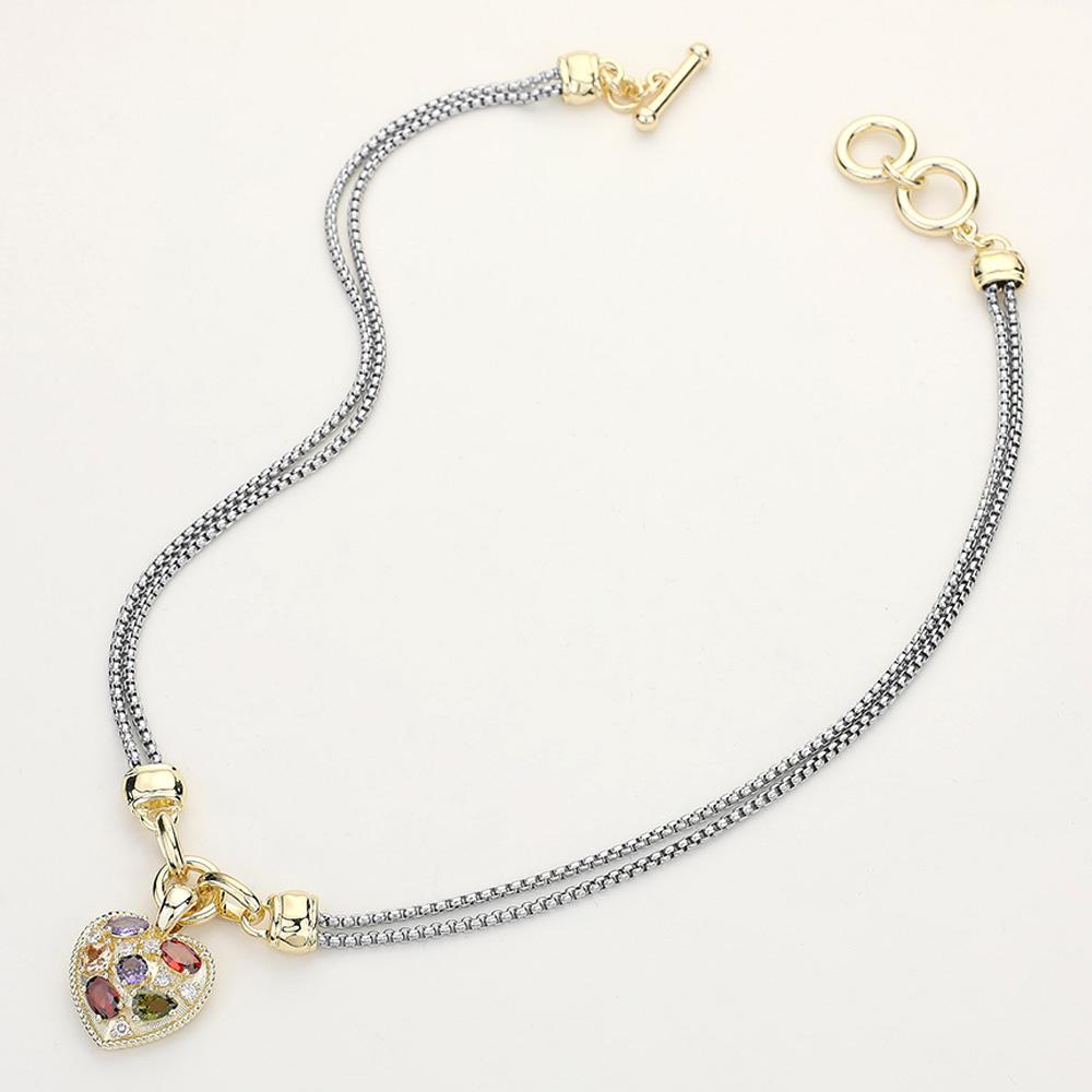 14K Gold Plated CZ Stone Embellished Heart Pendant Double Chain Toggle Necklace
