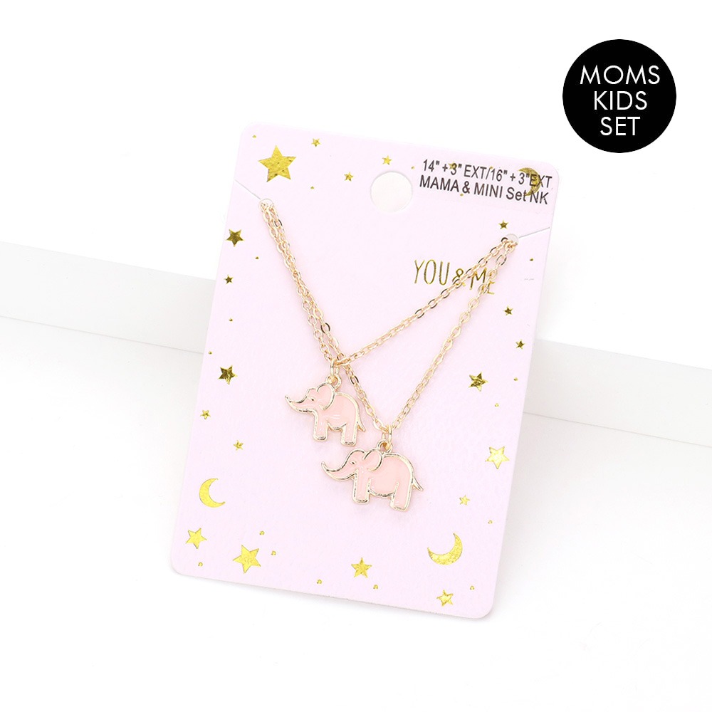 2PCS – Enamel Elephant Pendant Moms and Kids Set Necklaces