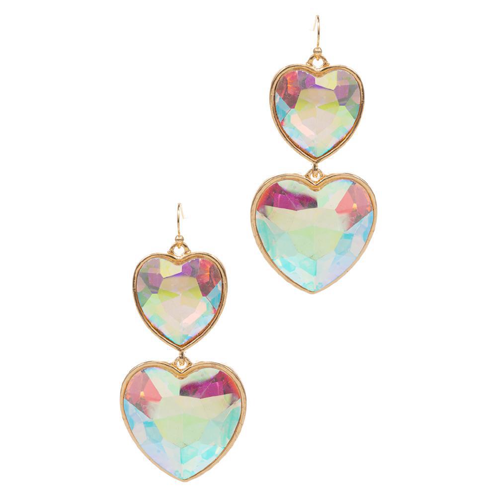 Crystal Stone Double Heart Dropdown Earrings