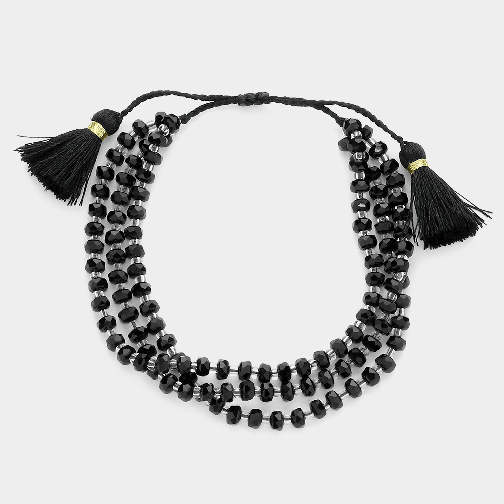 Faceted Beaded Triple Layered Tassel Pull Tie Cinch Bracelet