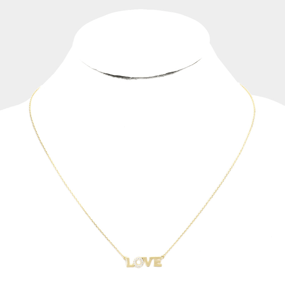 Gold Plate “Love” Necklace with Cubic Zirconia
