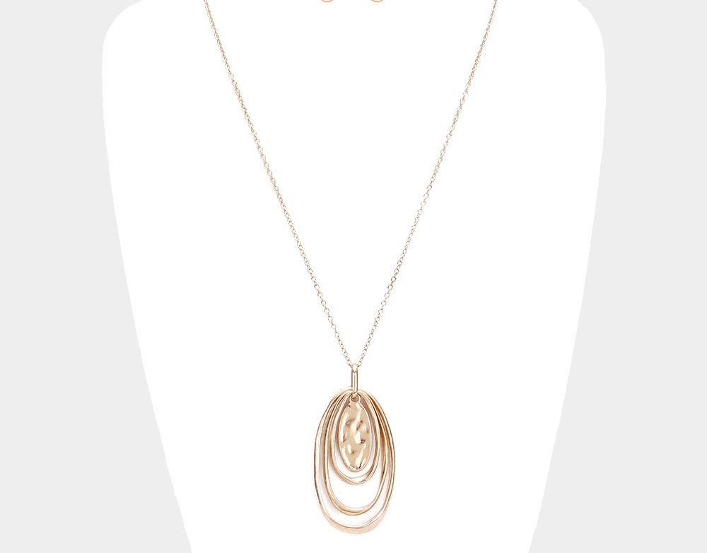 Hammered Metal Multi Open Circle Pendant Long Necklace