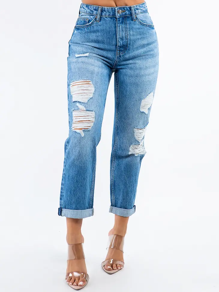 HIGH WAIST BOYFRIEND ROLL UP JEANS