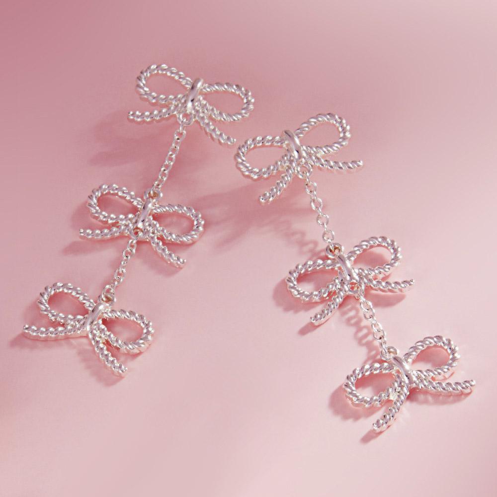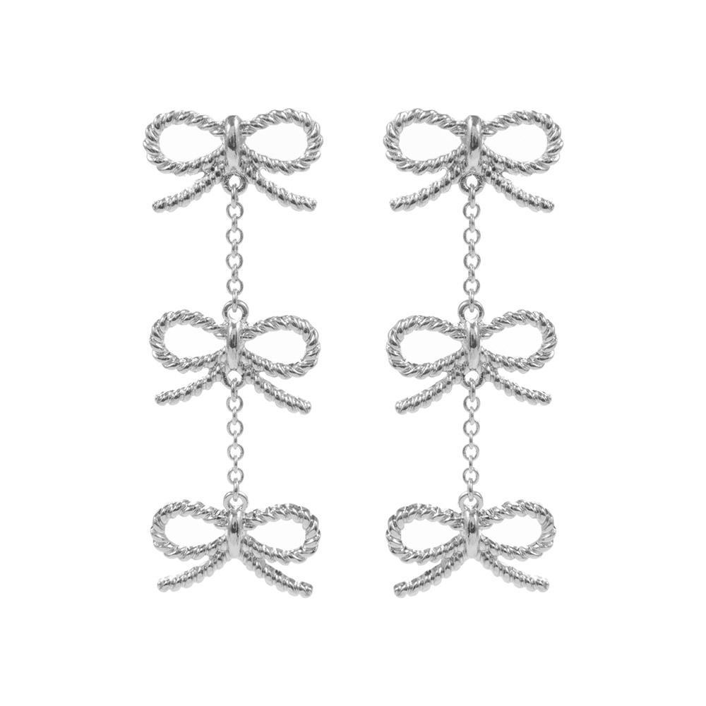 Hypoallergenic Titanium Post Textured Bow Link Dropdown Earrings