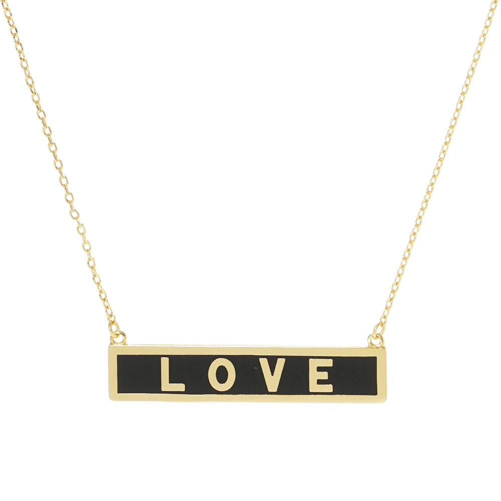 LOVE Gold Dipped Enamel Rectangle Message Pendant Necklace