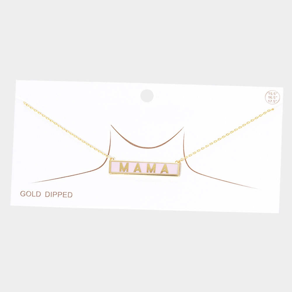 MAMA Gold Dipped Enamel Rectangle Message Pendant Necklace