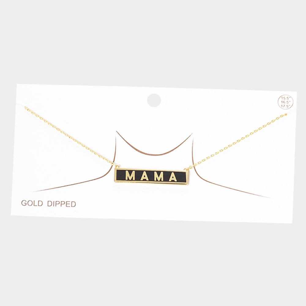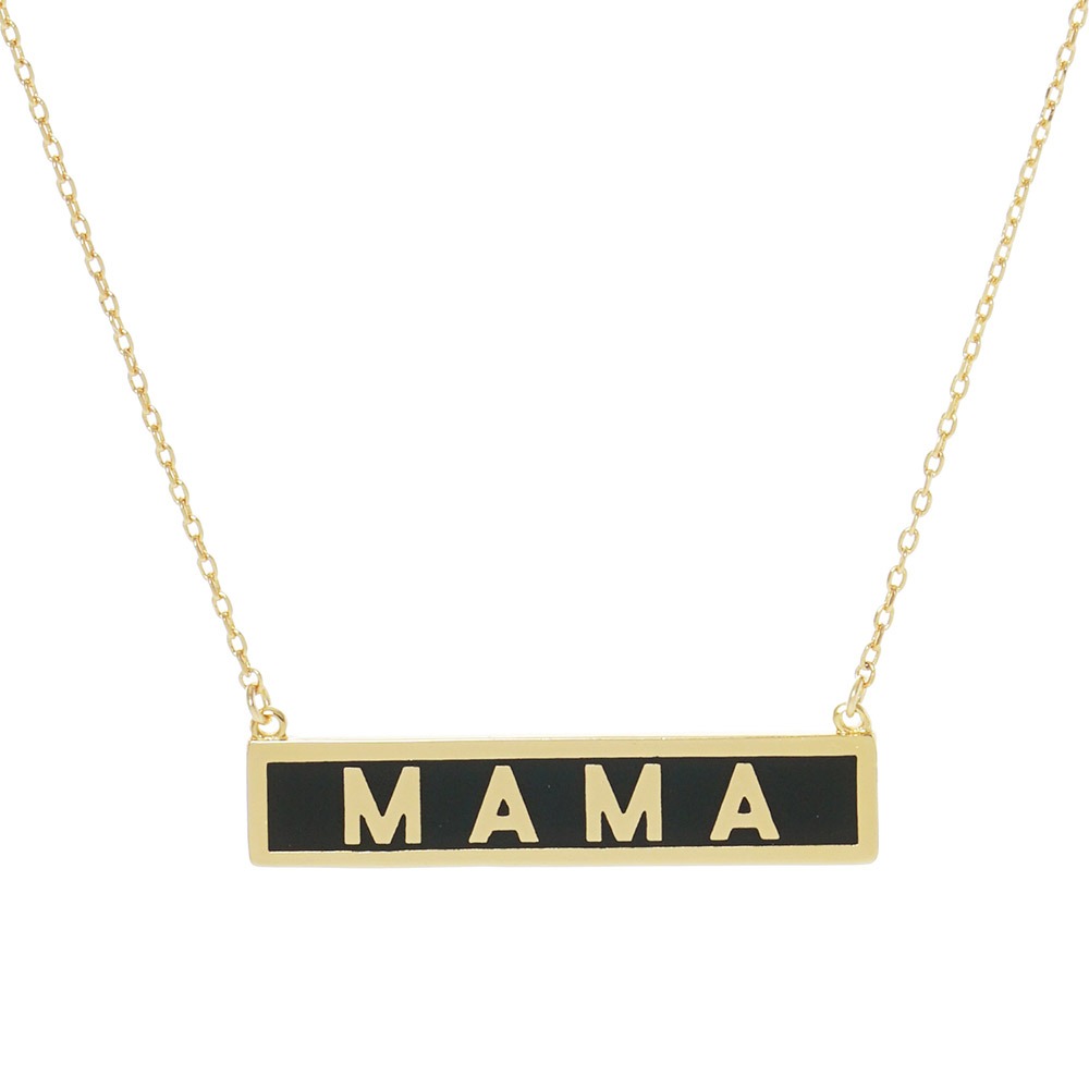 MAMA Gold Dipped Enamel Rectangle Message Pendant Necklace