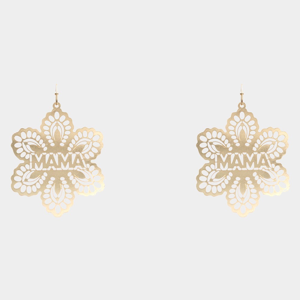 MAMA Message Brass Metal Flower Dangle Earrings