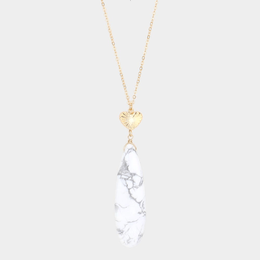 Metal Heart Teardrop Natural Stone Link Pendant Long Necklace