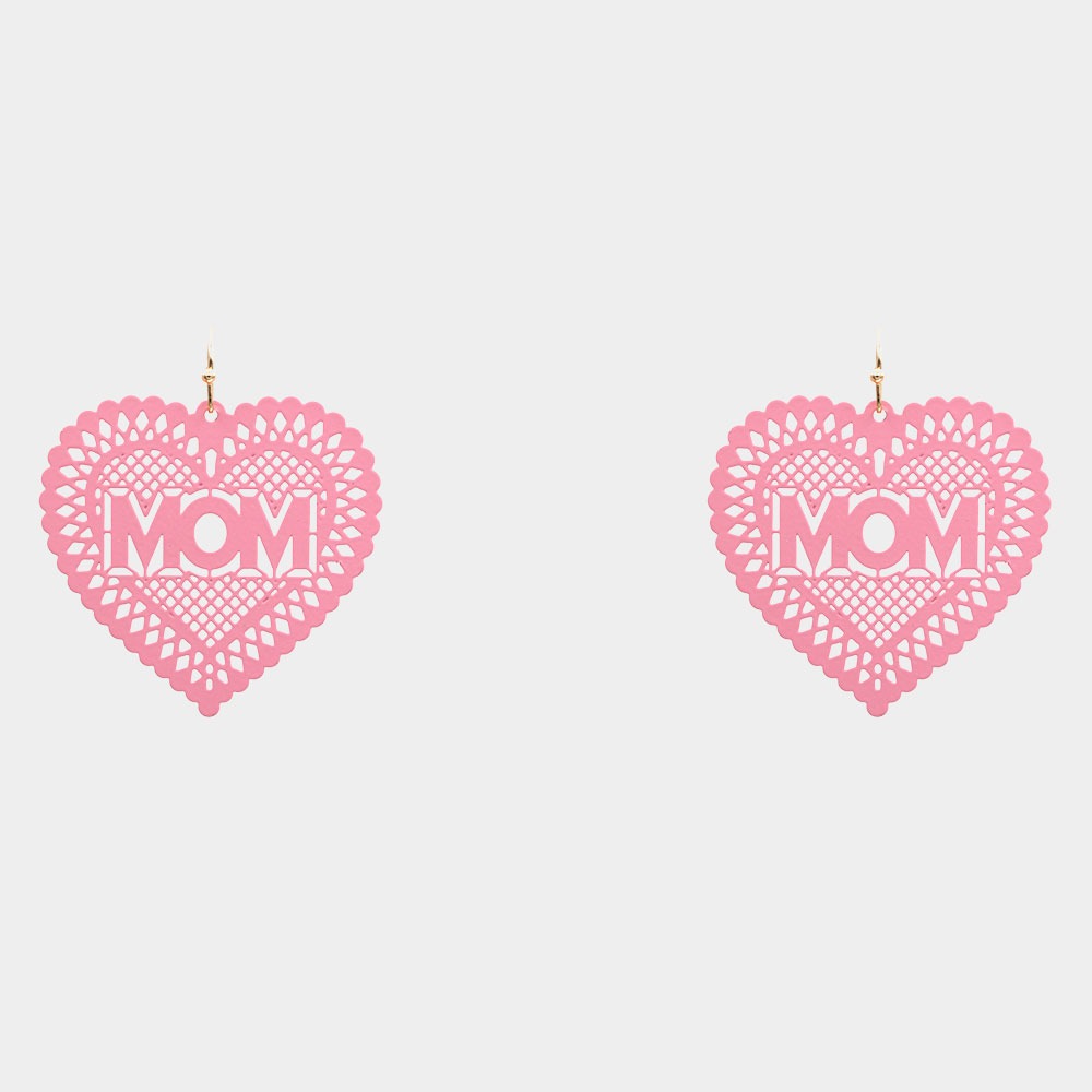 MOM Message Colored Brass Metal Heart Dangle Earrings