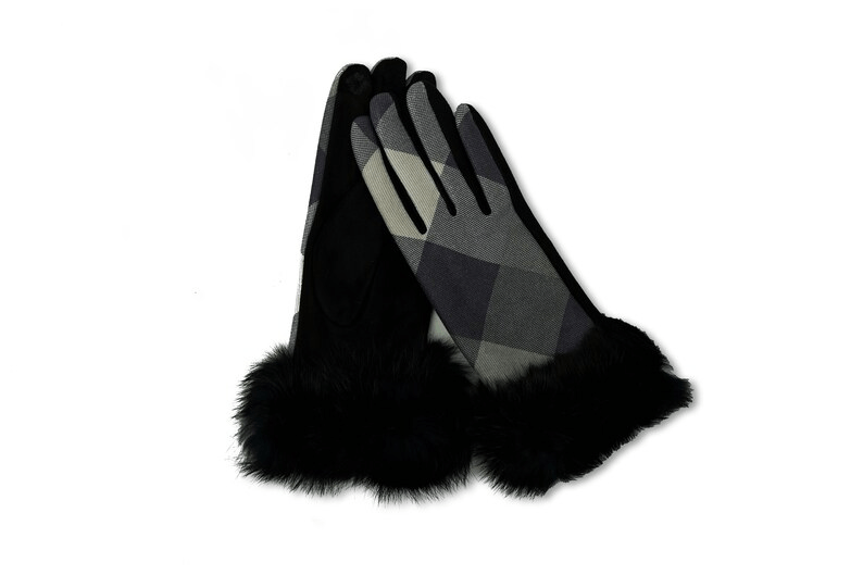 Plaid Checkered Sparkle Faux Fur Touch Gloves