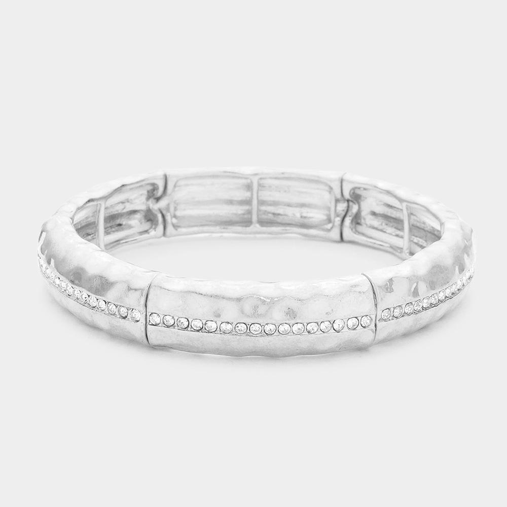 Rhinestone Aligned Hammered Metal Stretch Bracelet