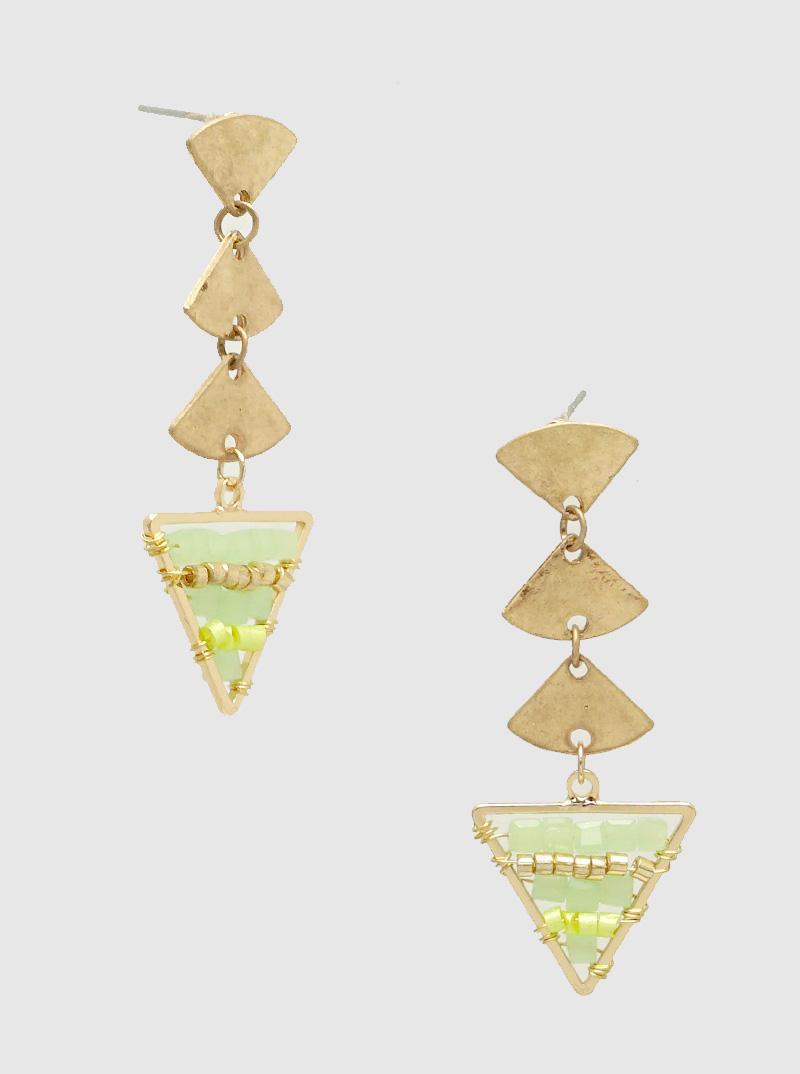 Seed Beaded Arrowlike Triangle Post Drop Earrings