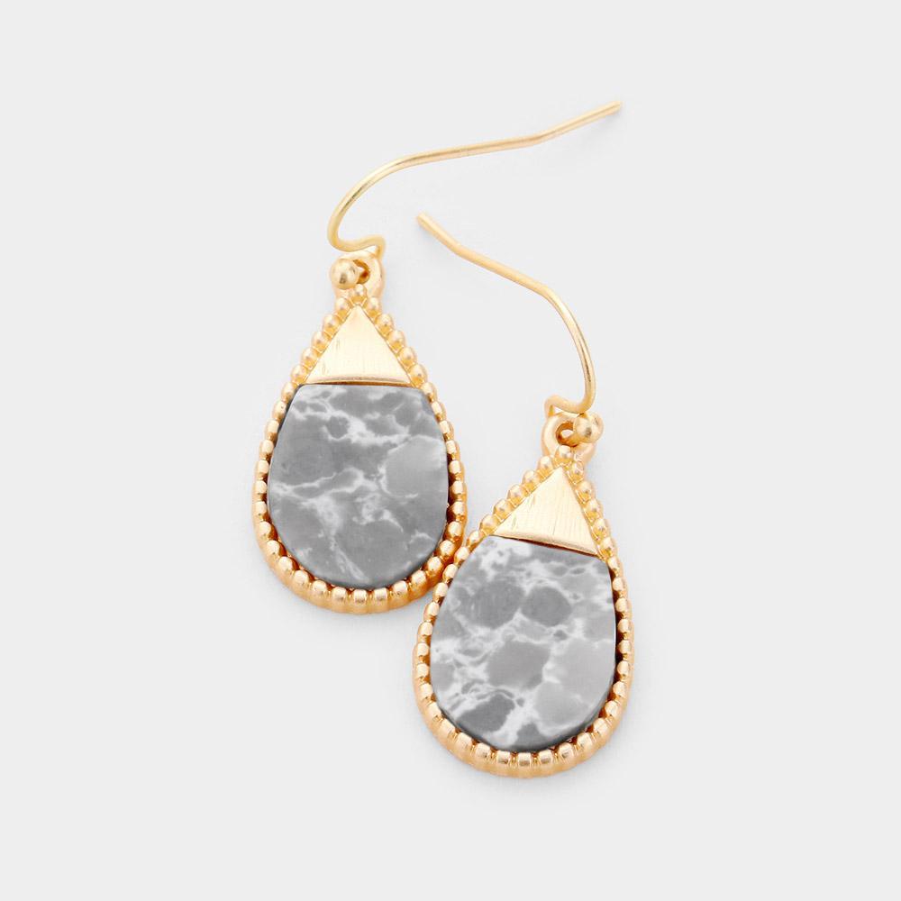 Teardrop Marvel Stone Gold Metal Trim Earrings