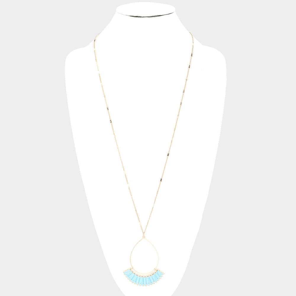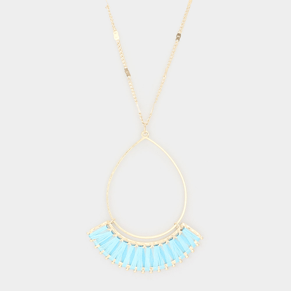 Wrapped Thread Open Metal Teardrop Pendant Long Necklace